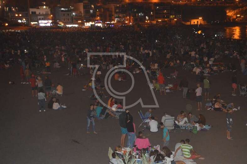 Desde primera hora de la noche comenzó a notarse el movimiento de miles de personas hacia el sector de Melenara en vehículos privados y transporte público y al filo de las 23.00 horas la arena de la playa, paseo marítimo y todo su entorno estaban ya abarrotados de público de todas las edades ávido de contemplar el espectáculo pirotécnico.