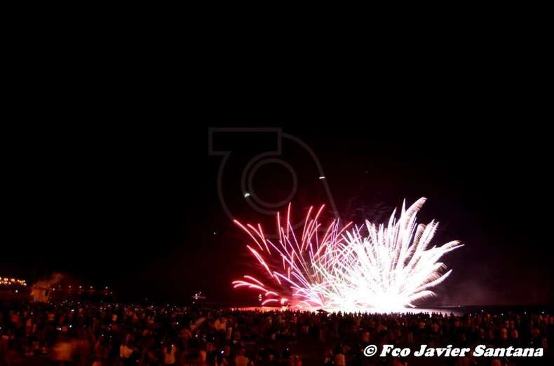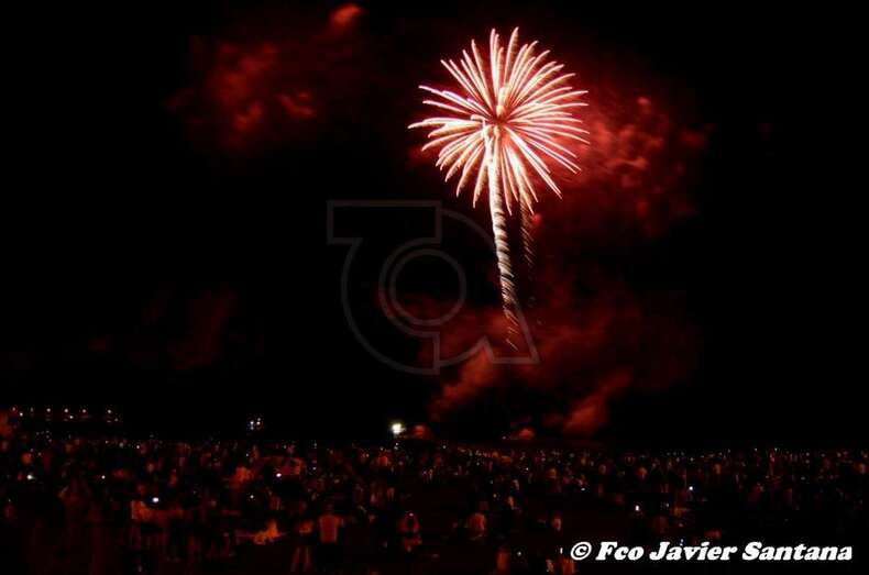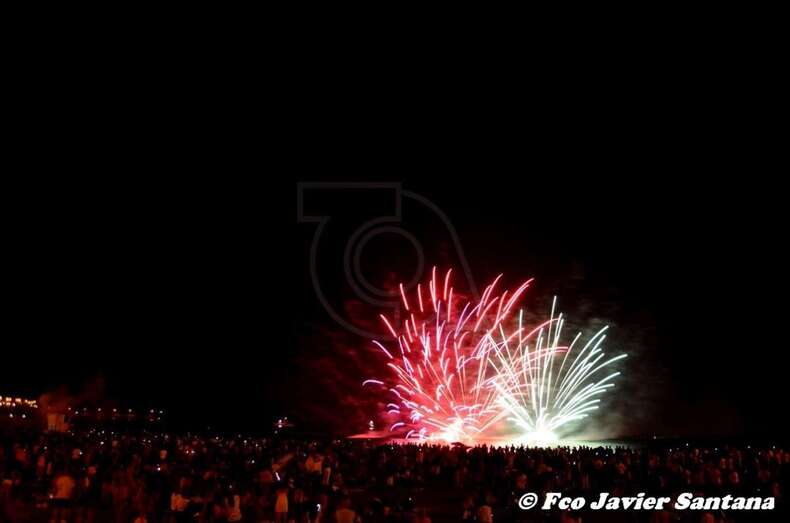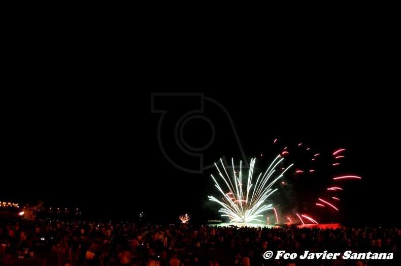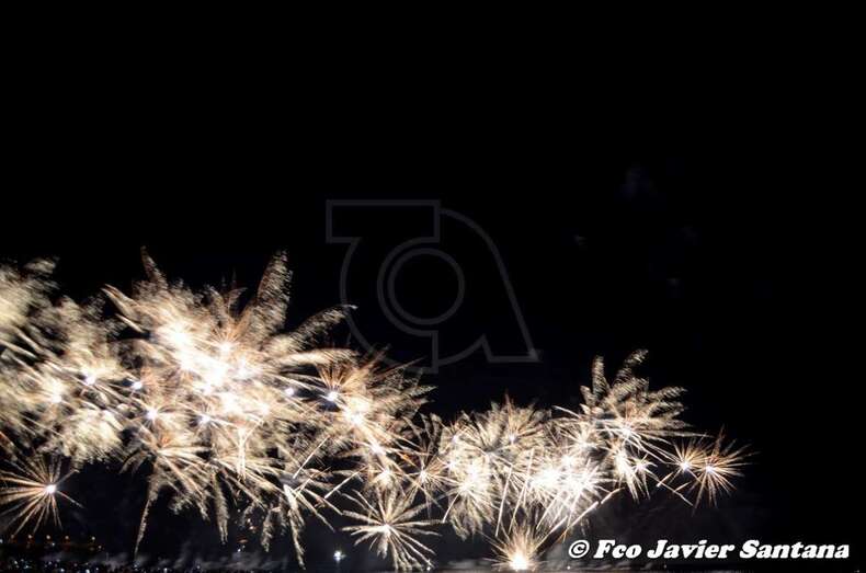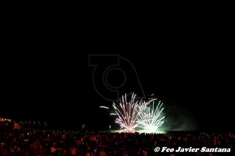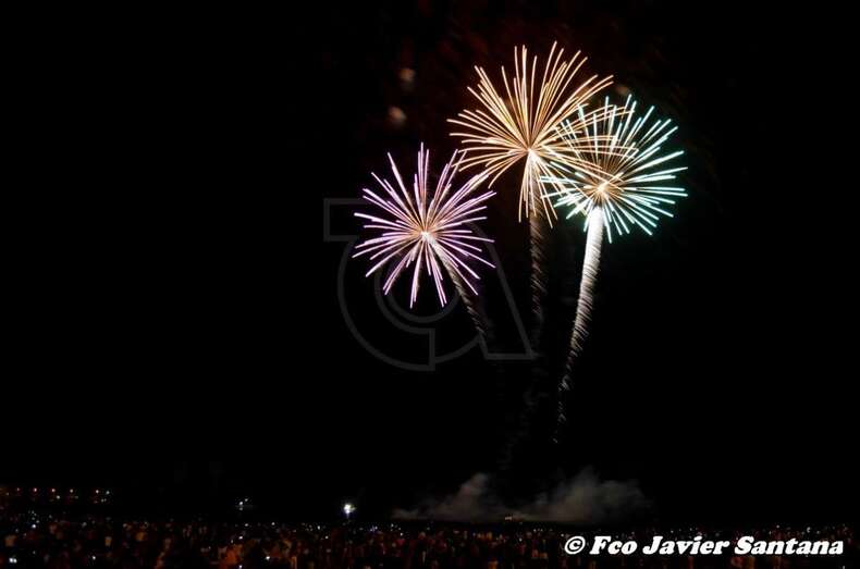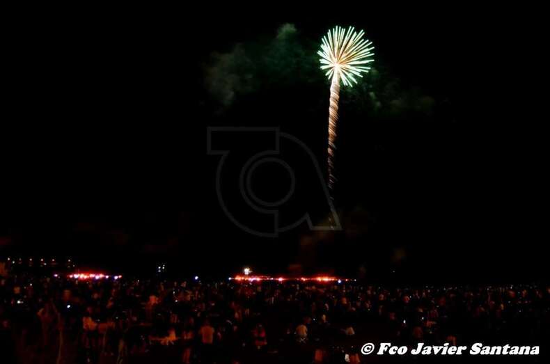 Momento inicial de los fuegos de esta medanoche (Foto Francisco Javier Santana) Momento inicial de los fuegos de esta medanoche (Foto Francisco Javier Santana)