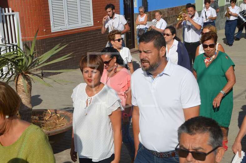 El desfile religioso se inició con los tronos portados a hombro por vecinos de Melenara. A la puerta del templo de Clavellinas, las imágenes eran recibidas por la feligresía y por una representación de las autoridades municipales con el alcalde de Telde en funciones, Juan Martel, al frente. También acompañaron la procesión el director general de Infraestructuras Turísticas, Héctor Suárez, y la consejera insular y vecina de Melenara, Minerva Alonso.