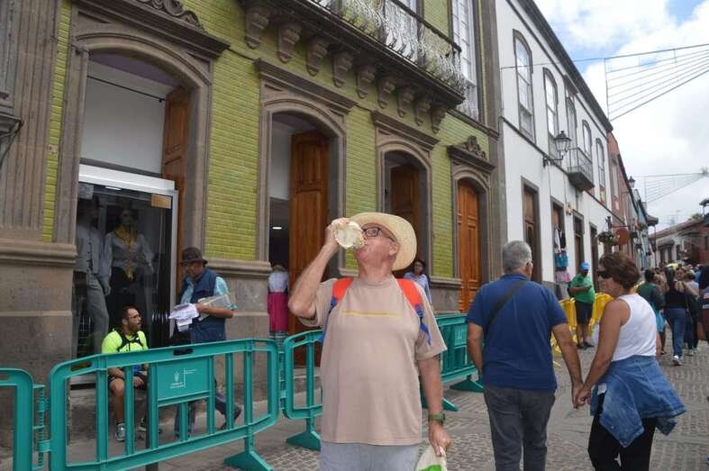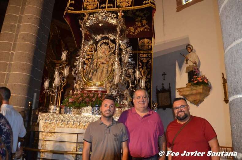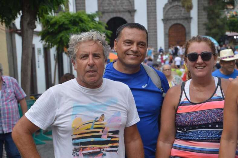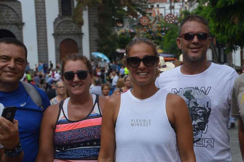 Cientos de teldenses, unos a pie y otros en coche o en transporte público, aprovecharon toda la mañana y bien entrada la tarde para acercarse hasta la Basílica a compartir unos minutos con la patrona de la Isla y, de paso, observar los preparativos, primero, y luego la participación de la carreta institucional que la ciudad llevó al multitudinario a la romería ofrenda.
