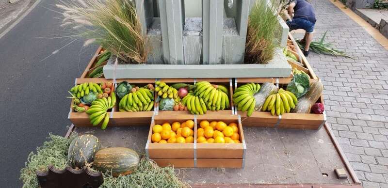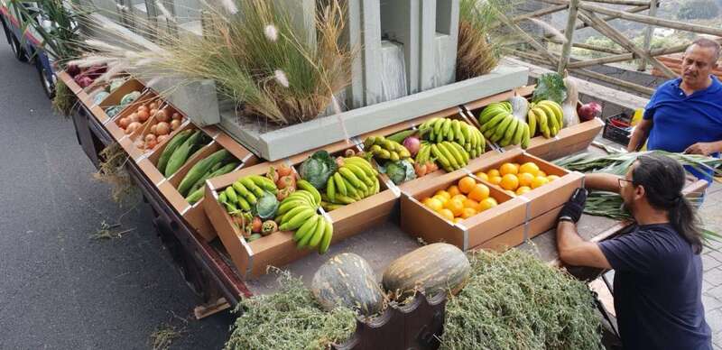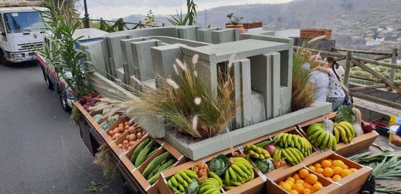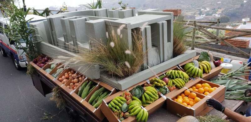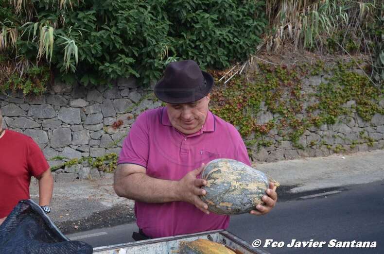 Más de 700 kilos de fruta y verdura fresca colmaron la carreta institucional que, además, portaba flores y plantas cultivadas, y a la que se sumó una representación de los productos ganadores de las principales catas insulares de 2018. Destacaban entre otros detalles, los 600 kilos de las diferentes variedades de papas de piel blanca, roja, rosada, violeta y negra cultivadas y cosechadas en Osorio en el ensayo de 2018, en el que 27 de las 31 semillas produjeron más de 37.000 kilos por hectárea.