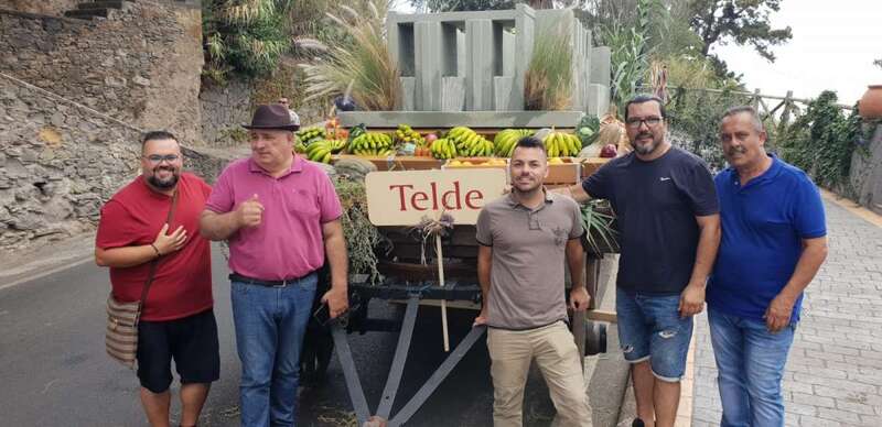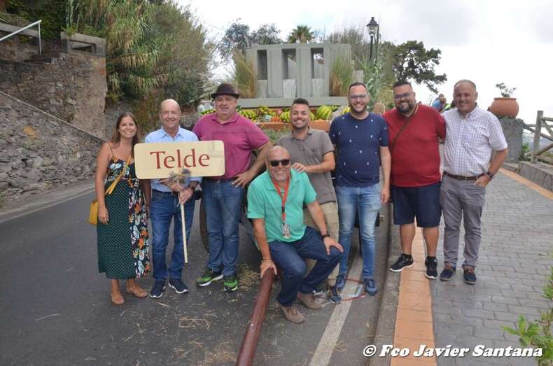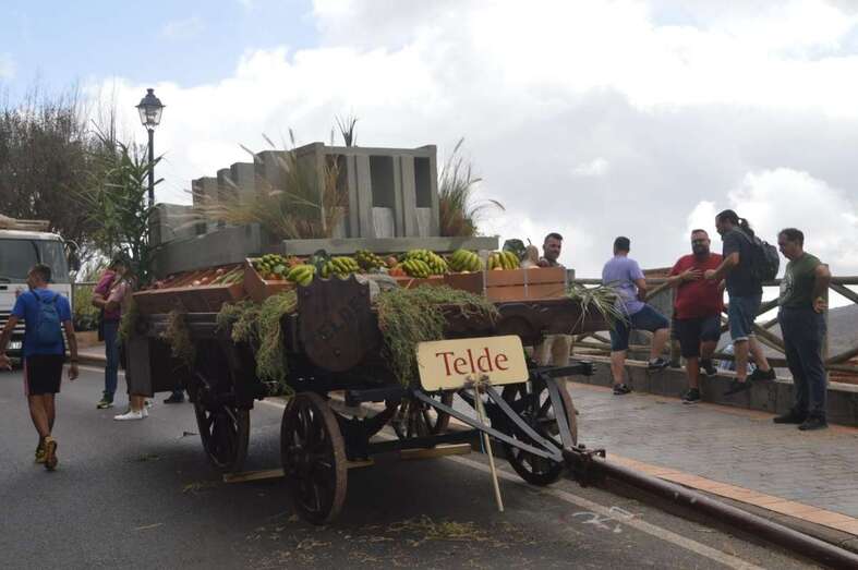 Telde.- Telde regó esta tarde con sus productos y música la villa mariana de Teror durante la LXVIII edición de la romería-ofrenda a la Virgen del Pino con una carreta dedicada a las antiguas cantoneras que distribuían el agua de riego entre las fincas agrícolas.