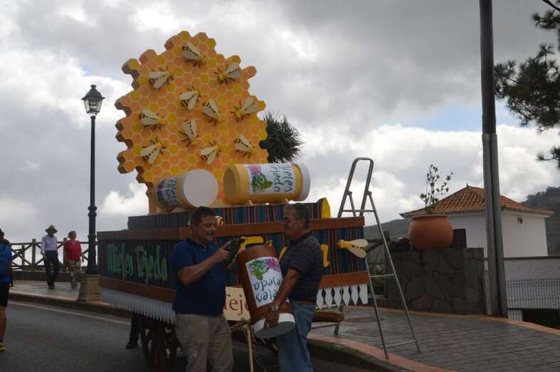 La carreta del Cabildo titulada Siempre a Teror, con diseño de Fernando Benítez, volvió a convertirse en una muestra de la variedad de productos y manufacturas que se impulsan desde su Consejería de Sector Primario y Soberanía Alimentaria, a través de la Granja Agrícola Experimental.