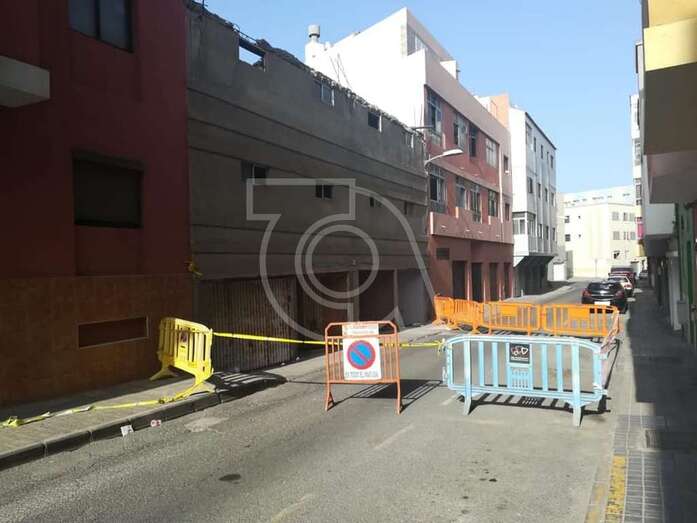 Telde.- En la calle de Crisantemo, en La Garita, el estado del frontis de un inmueble supone un peligro para los transeúntes y vehículos que transitan por esta vía por la caída constante de cascotes.