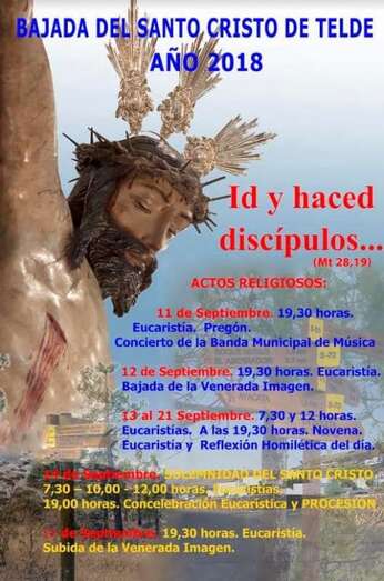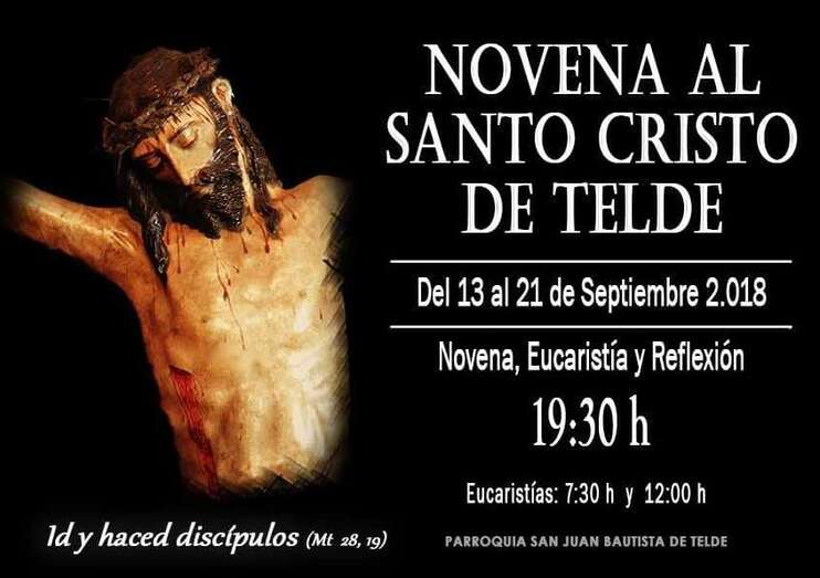 El novenario del Santo Cristo de Telde se extenderá del 12 al 22 de septiembre. Todos estos días se rezará el Santo Rosario a partir de las 19.00 horas. A continuación, a las 19.30 horas, se oficiará la eucaristía. Además, desde el 13 y hasta el 22 también se oficiarán misas a las 7.30 y 12.00 horas.