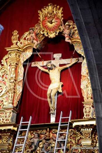 Telde.- “Santo Cristo de Telde, cuídanos que nosotros te cuidaremos”. Con esta plegaria del párroco José María Cabrera, la Basílica asistió esta noche a la Bajada de la venerada imagen en una solemne ceremonia con una feligresía efervorizada que llenaba el templo matriz de la ciudad.