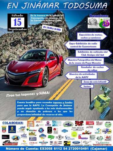 La jornada del sábado 15 de septiembre girará en torno al mundo del motor. A partir de las 10.00 y hasta las 16.00 horas se sucederá un amplio abanico de actividades como una exposición de motos, coches y camiones, una exhibición de radio control de Guanarteam, una muestra de vehículos del Club Amigos del 4x4, una exposición fotográfica organizada por Pepe Monzón, un simular de coches de rallyes, etcétera. Habrá una zona de ocio infantil y puesto con una muestra de las actividades que organiza el colectivo La Concepción.