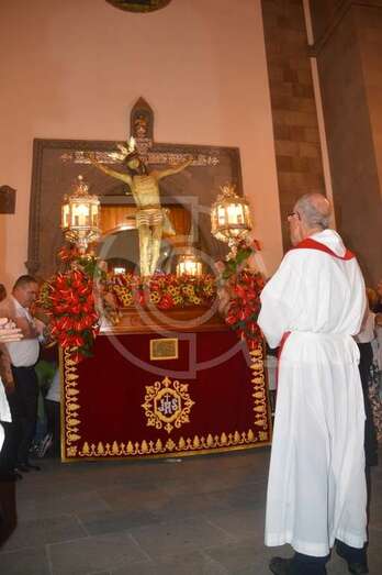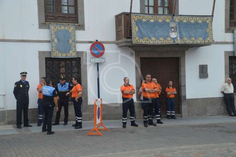 A las puertas del templo esperaba al Cristo una amplia representación de autoridades regionales, insulares y locales, encabezadas por el vicepresidente del Gobierno de Canarias, el teldense Pablo Rodríguez, la alcaldesa Carmen Hernández y la consejera del Cabildo grancanario, Minerva Alonso, junto al pregonero de la edición de este año de las fiestas, el médico Fernando Urtasun Brito, y de la Banda Municipal de Música, que acompañó también todo el recorrido.