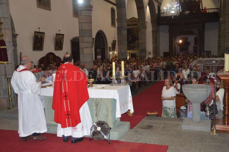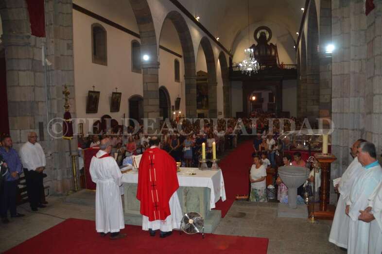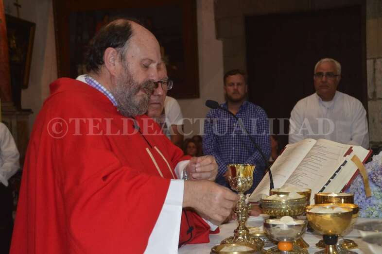 La ceremonia comenzó al filo de las 20.45, al término de una eucaristía concelebrada por el sacerdote Luis Laborda y por Cabrera, cura-párroco de San Juan, a la que también se sumaría el clérigo teldense Eugenio Peñate.