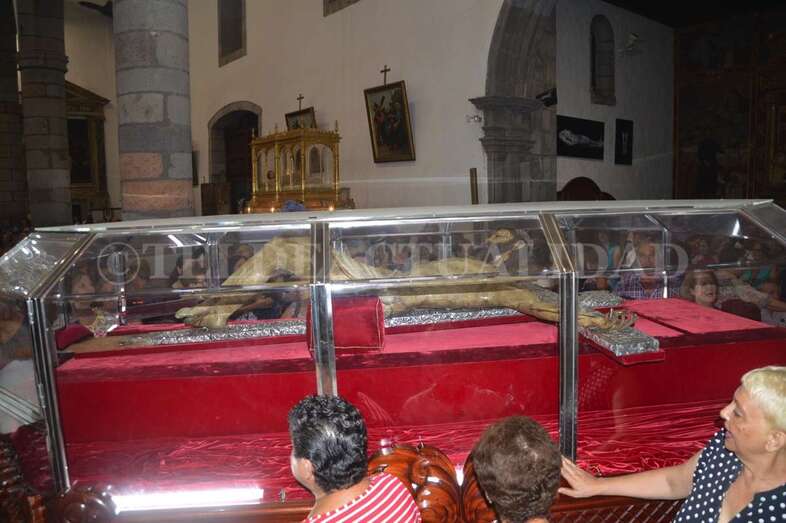 Telde.- El Santo Cristo de Telde ya se encuentra en lo alto del Altar Mayor de la Basílica de San Juan. La piadosa y preciada imagen retornó esta noche a su hornacina, en donde aguardará hasta que el próximo 12 de septiembre vuelva a encontrarse con sus devotos, después de una emotiva ceremonia que fue seguida por cientos de fieles que abarrotaron el templo matriz de la ciudad y también parte de la plaza exterior.