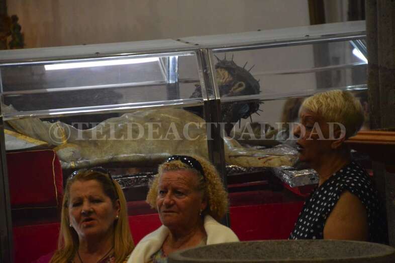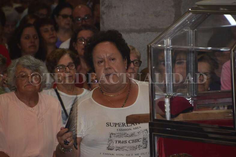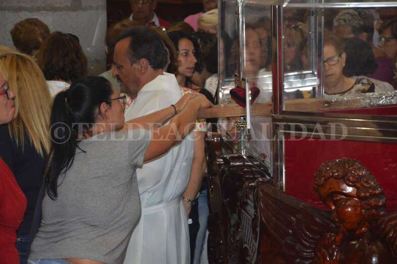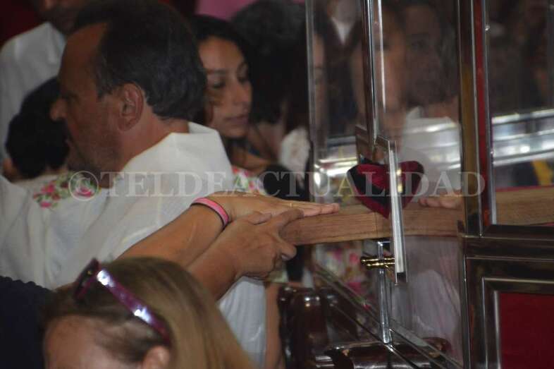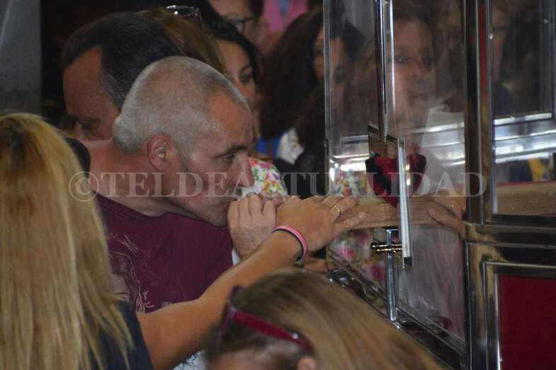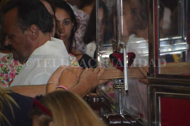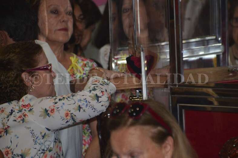 Fue en ese preciso instante cuando la emoción se desató. Entre gritos de “¡Viva el Santo Cristo de Telde!", las lágrimas y los aplausos de la muchedumbre. La imagen fue ascendiendo con serenidad hasta ser depositada en la hornacina del retablo.