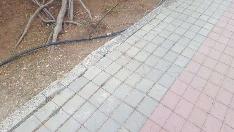 El equipamiento está dejado de la mano de dios. Según residentes, abunda la basura y los hierbajos, las plantas están secas y en algunos puntos, además, el firme adoquinado está levantado por las raíces de los árboles, convirtiéndose en focos propicios para tropiezos como ocurrió días atrás en que "un menor se lesionó un brazo al caer al suelo", aseguran.