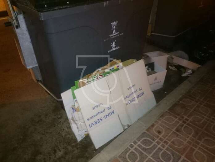 Telde.- La estampa se repite casi todas las noches. Comercios de Los Llanos, al finalizar su jornada, depositan sus cajas de cartones en los alrededores de los depósitos de basura, sin preocuparse de trocearlos e introducirlos en los recipientes específicos para ello.