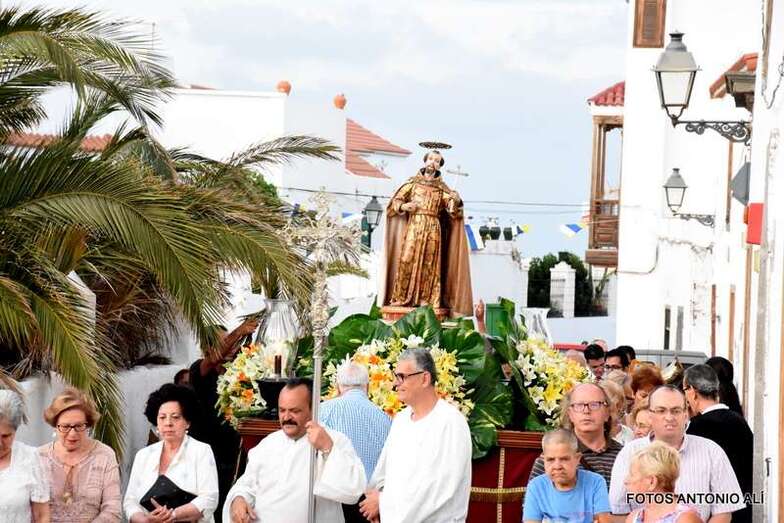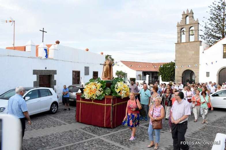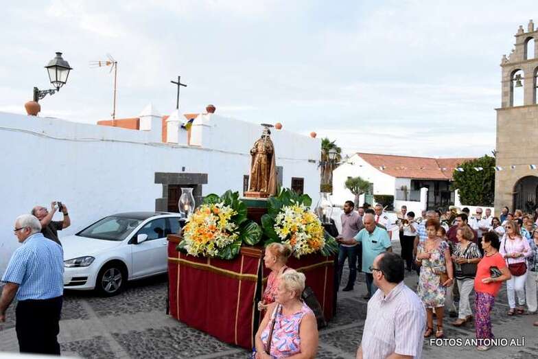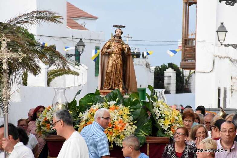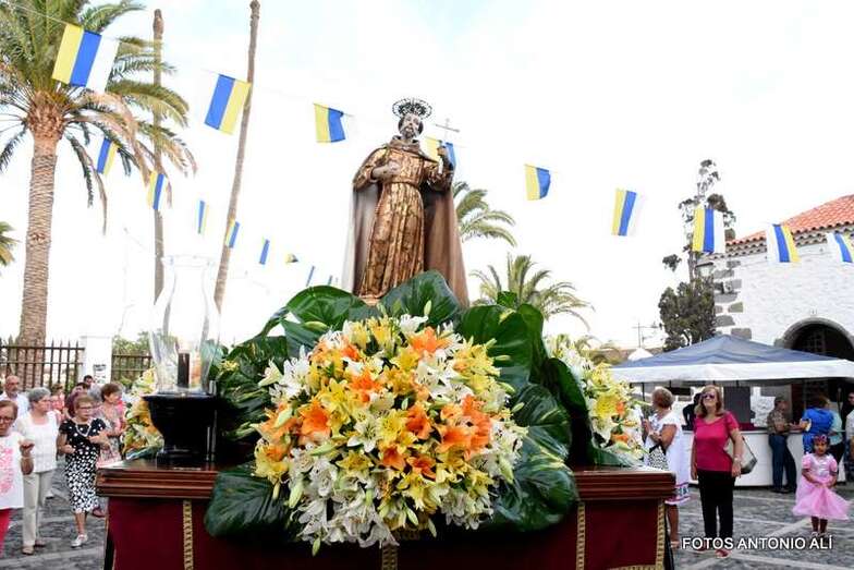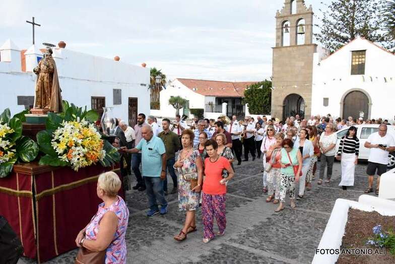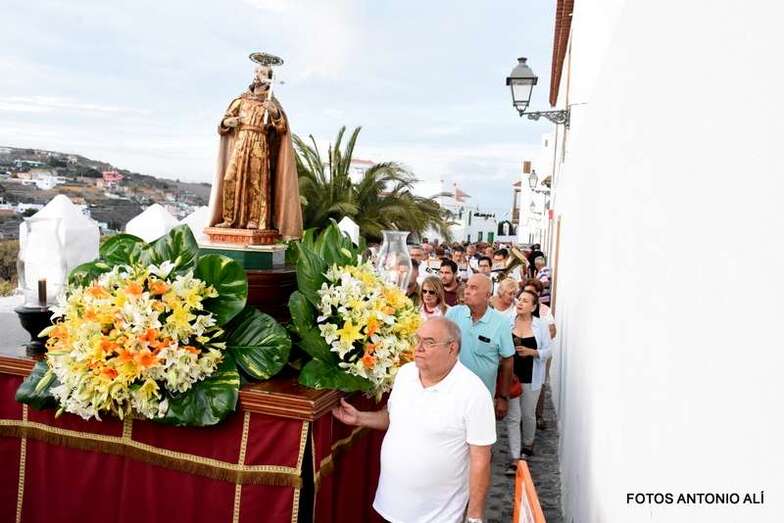 Telde.- Como cada 4 de octubre, el enclave franciscano de Telde honró esta tarde-noche a su patrono con una misa en el templo conventual oficiada por el párroco José María Cabrera y la procesión del trono del santo de Asís por las calles del histórico núcleo del casco antiguo de la ciudad, acompañada de un nutrido grupo de feligreses, autoridades y la Banda Municipal de Telde.