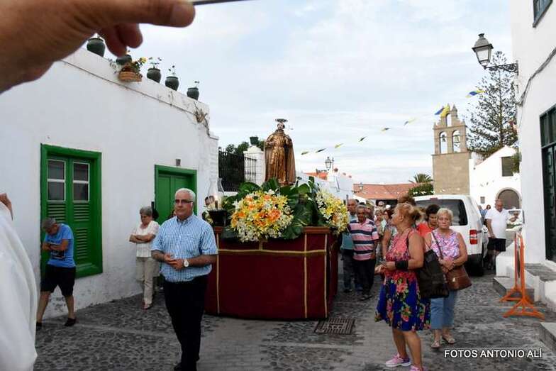El desfile religioso, que salió de la iglesia al término de la eucaristía que dio comienzo a las 18.00 horas, efectuó el recorrido habitual por las calles de Portería, Carreñas, Tres Casas y San Francisco, para regresar al templo en poco más de media hora. Los vecinos se quejaron de que en esta ocasión, la primera en muchos años, no se ordenó la retirada de los vehículos que suelen aparcar en las vías por las que pasa la procesión.