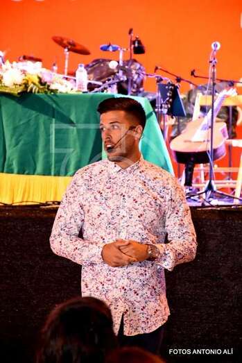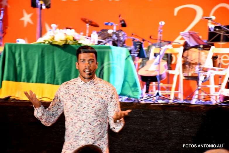 Telde.- Aduén Hernández Amaya, a pesar de la lluvia, pudo pregonar anoche las fiestas del Pilar en Valle de Los Nueve. Hizo un recorrido desde la llegada de su familia al barrio donde él nació.
