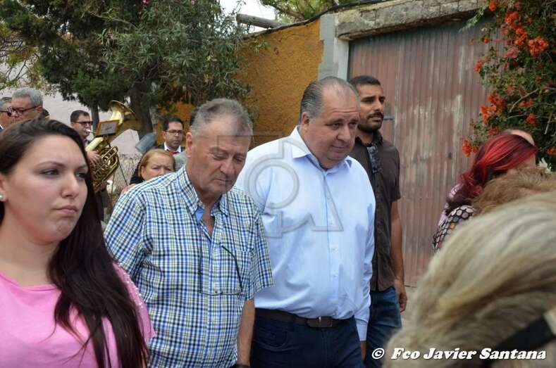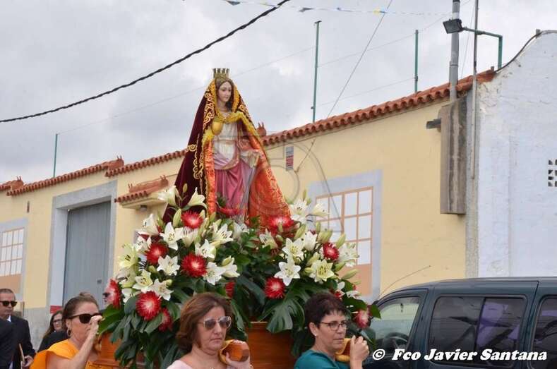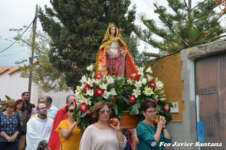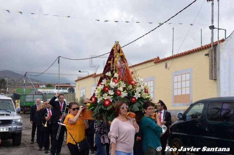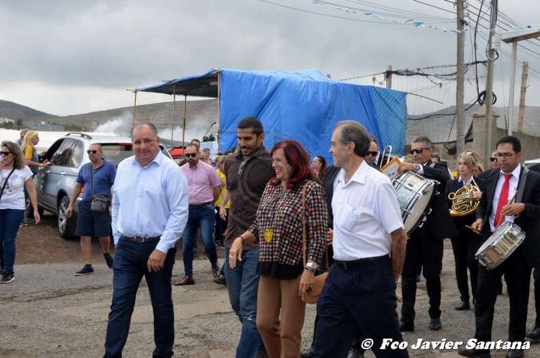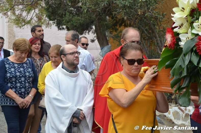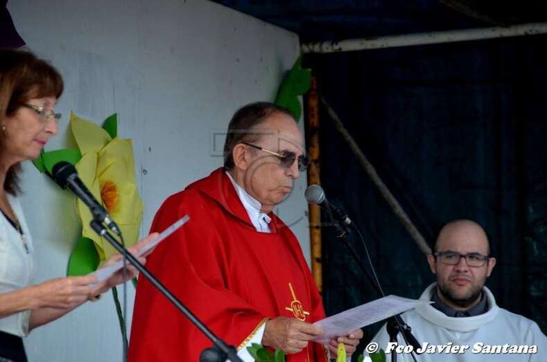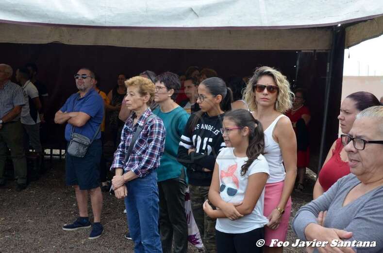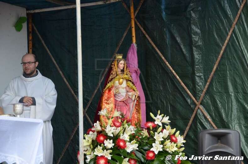 El párroco José Ramírez, que ofició la misa y presidió el desfile religioso, agradeció el gesto de esta mujer que vino expresamente del municipio de San Bartolomé de Tirajana para donar la prensa a la patrona de este enclave de autoconstrucción situado en las medianías de Telde.