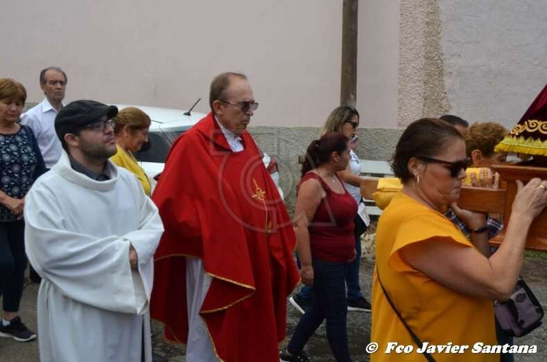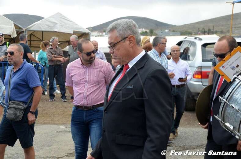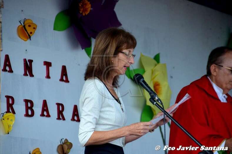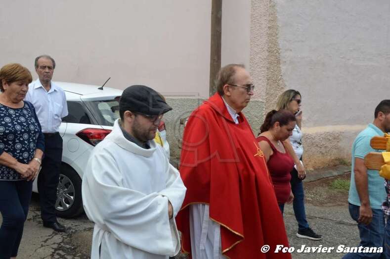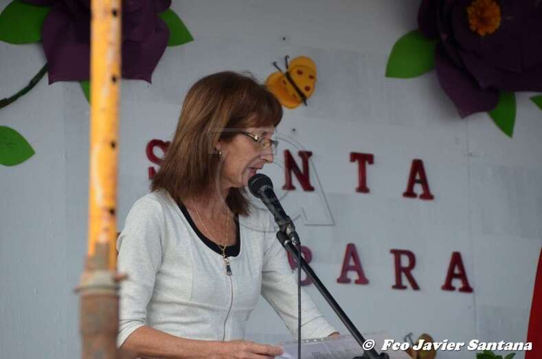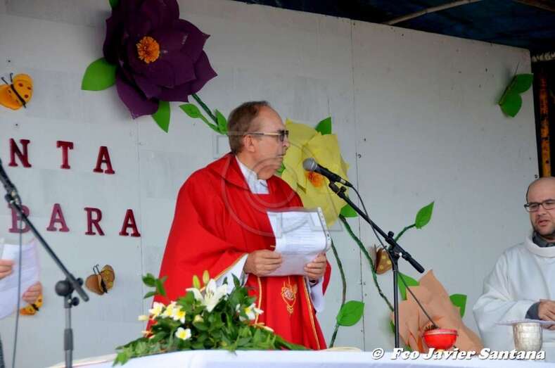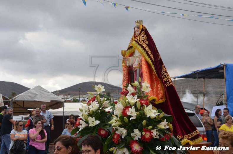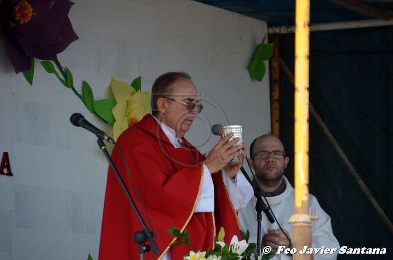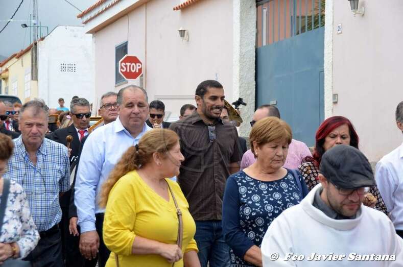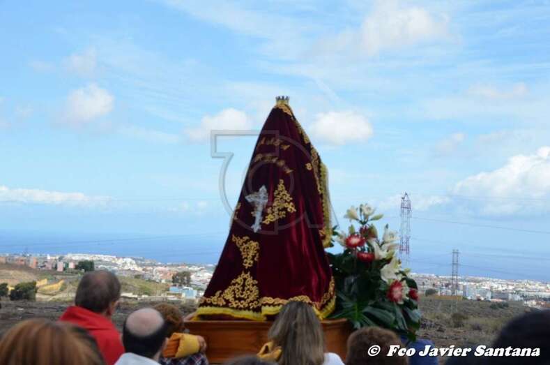 El párroco José Ramírez, que ofició la misa y presidió el desfile religioso, agradeció el gesto de esta mujer que vino expresamente del municipio de San Bartolomé de Tirajana para donar la prensa a la patrona de este enclave de autoconstrucción situado en las medianías de Telde.