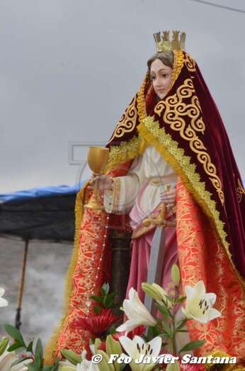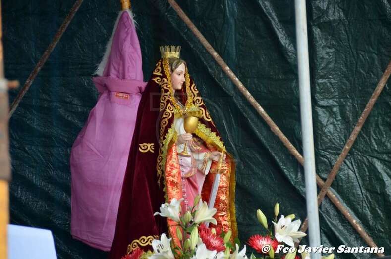 La talla de Santa Bárbara, este domingo en Lomo Catela, con nuevo manto (Foto Francisco Javier Santana) La talla de Santa Bárbara, este domingo en Lomo Catela, con nuevo manto (Foto Francisco Javier Santana)