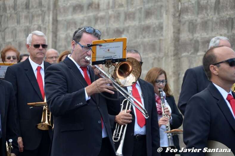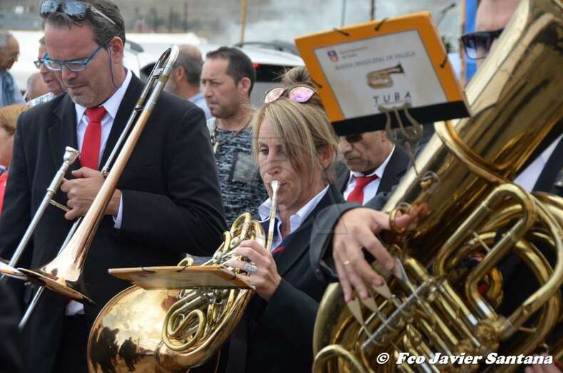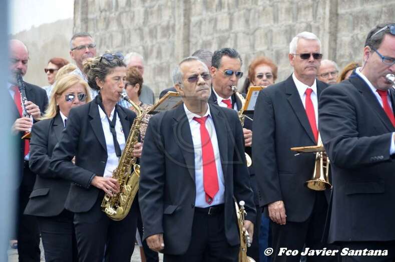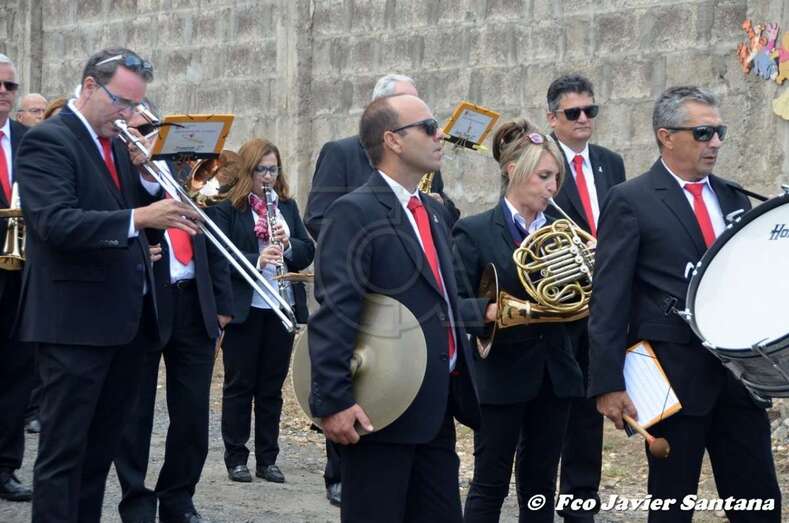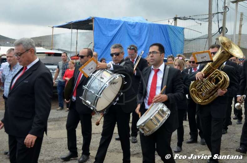 Tras la eucaristía, el trono de Santa Bárbara recorrió a hombros de vecinos del lugar las calles de Lomo Catela, con el acompañamiento de feligreses, autoridades locales y la Banda Municipal de Música.