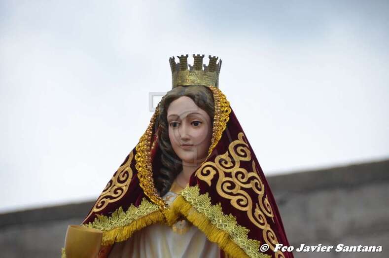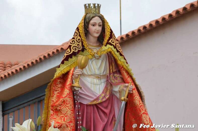 Telde.- La talla de Santa Bárbara lució este domingo durante la procesión de las fiestas del núcleo teldense de Lomo Catella un nuevo y bello manto donado por una vecina de Juan Grande.