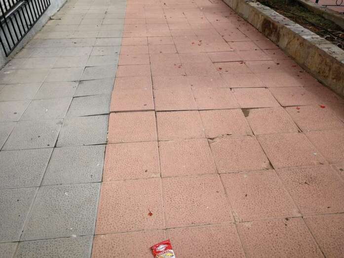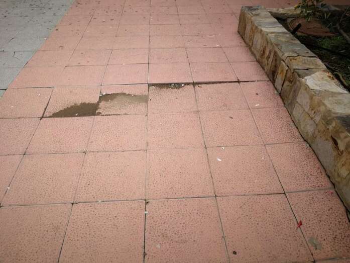 El equipamiento público lleva sin luz desde hace días, está sucio y con losetas rotas o levantadas