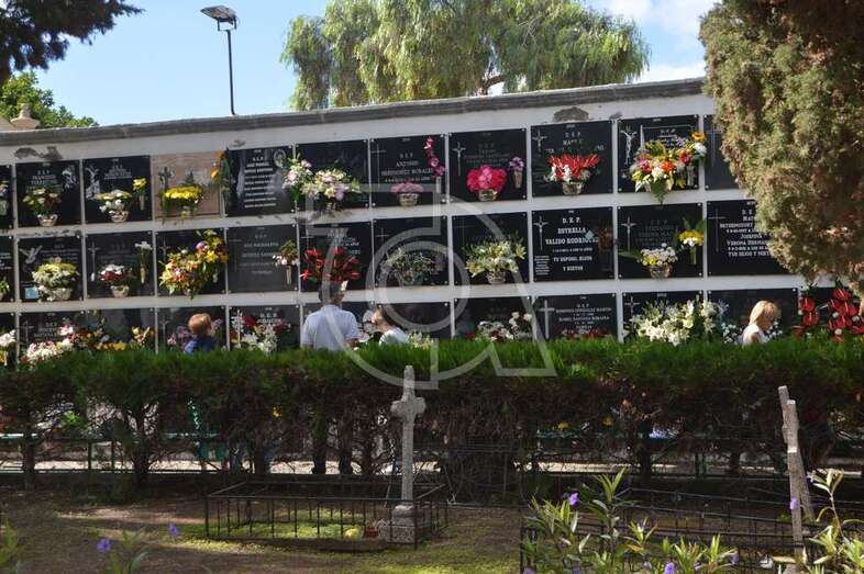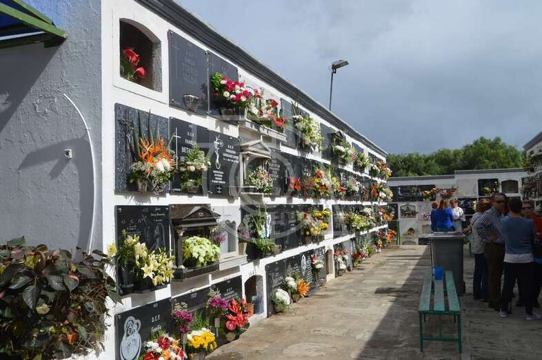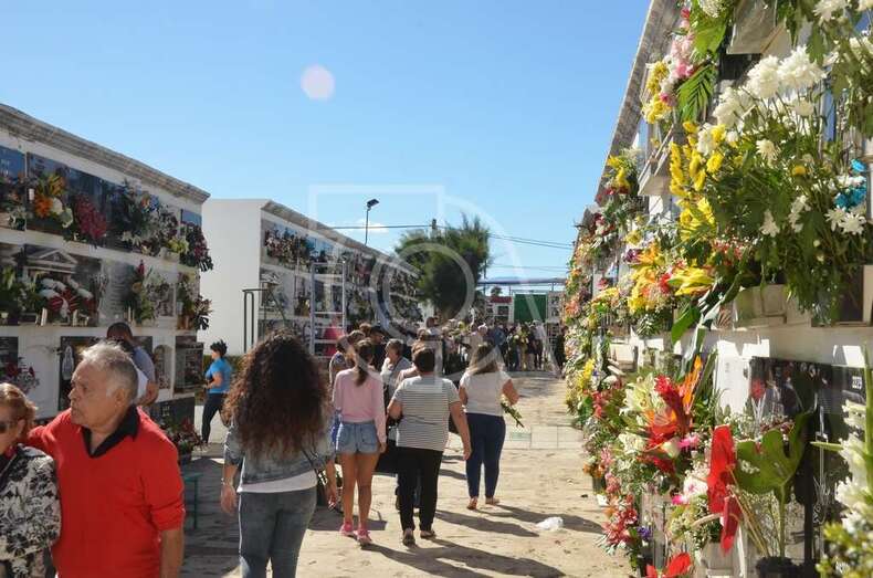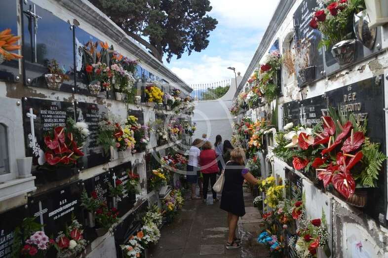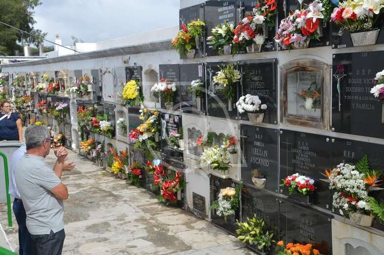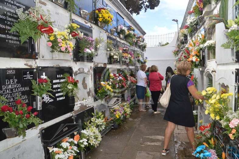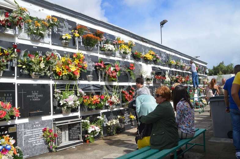 Las calles entre las estructuras verticales de las necrópolis teldenses, que acogen los nichos, se convierten en estas jornadas especiales en un espacio lleno de flores. Más que un lugar triste el cementerio parece un lugar de encuentro donde mientras se limpia y se ponen flores, se habla de la vida y la muerte, con la resignación que da el paso del tiempo.
