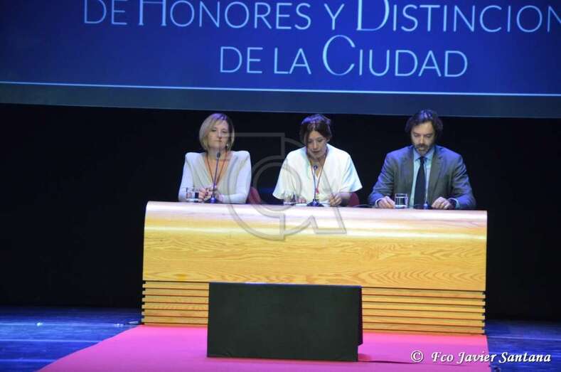 Tras la conformación de la mesa presidencial, integrada por la primera mandataria local, la concejala de Cultura, Marta Hernández, y el secretario general de la Corporación, Ángel Sutil, y la entrada en el escenario de los homenajeados, se dio cuenta de los acuerdos plenarios adoptados de concesión de las distinciones honoríficas y se proyectaron videos cortos con imágenes de la trayectoria de cada uno de los premiados y su valoración del galardón recibido.