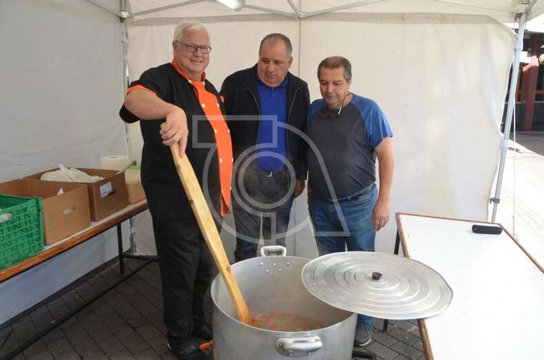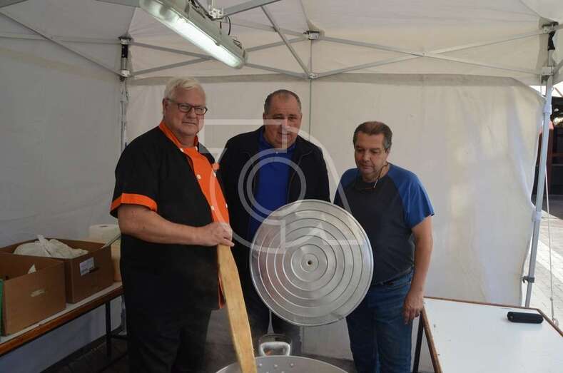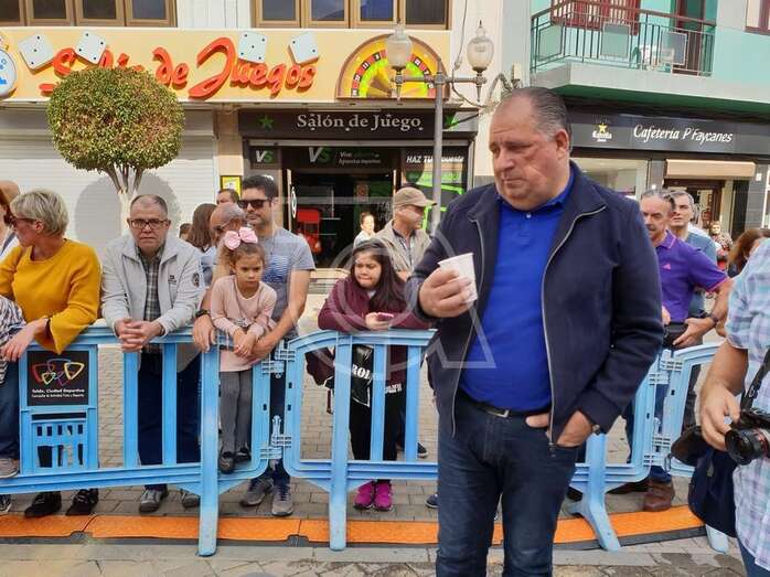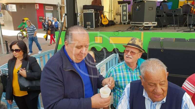 En la plaza, a las 12.00 horas, los grupos Atacayte y Frangollo tomaron el escenario con su música canaria y dos horas más tarde se comenzó a repartir entre el público asistente el potaje canario que prepara cada año a fuego lento José Antonio Montesinos, conocido popularmente como Tonono.