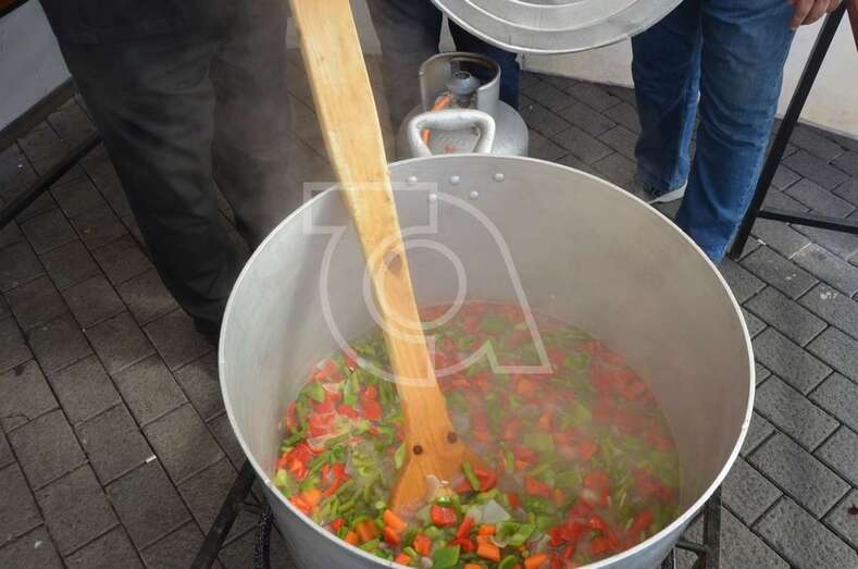 El cocinero del apartotel Il Rondo, sito en el sur grancanario, se puso a la tarea muy pronto, al filo de las 9.00 horas, ya que tenía por delante el arduo trabajo de elaborar un gran condumio canario con numerosos ingredientes de la tierra y con capacidad suciente para repartir entre 350 y 400 raciones. Finalizando la distribución del potaje hizo acto de presencia nubes que presagiaban precipiaciones, como así ocurrió minutos después de las 14.30 horas, momento en que cayó un buen roció en el casco urbano.