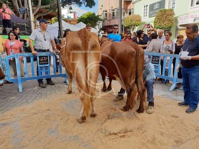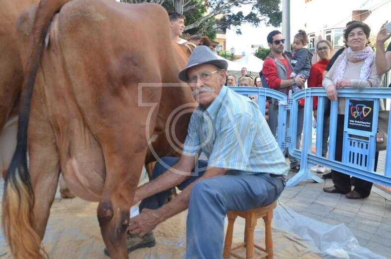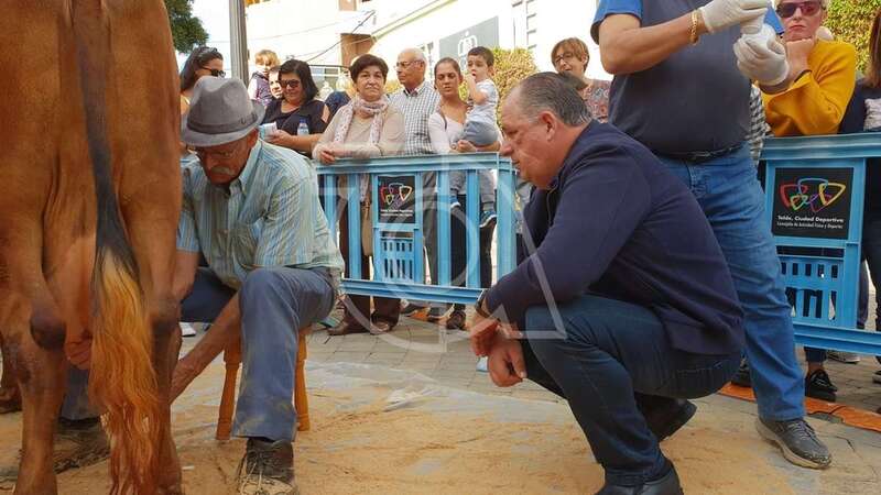 Las actividades programadas por la Concejalía de Festejos para este sábado, que es festivo en Telde, comenzaron a las 10.00 horas con la tradicional ordeñada de cinco vacas del país que permitió a decenas de personas que se acercaron al espacio acotado por vallas delante de la plaza de un vaso de leche fresca con gofio.