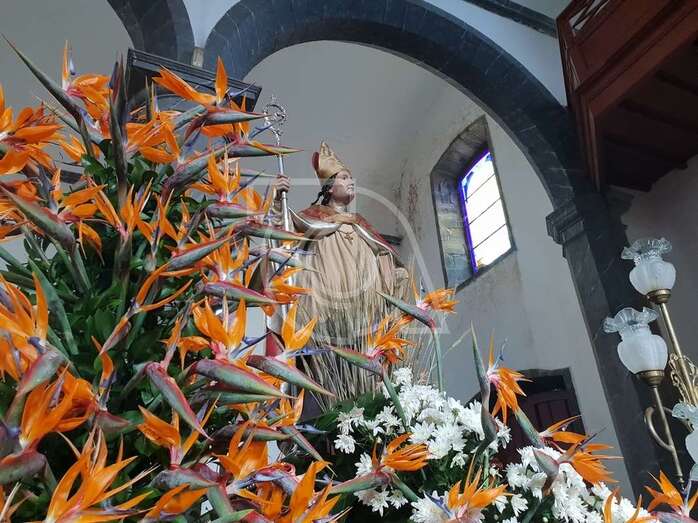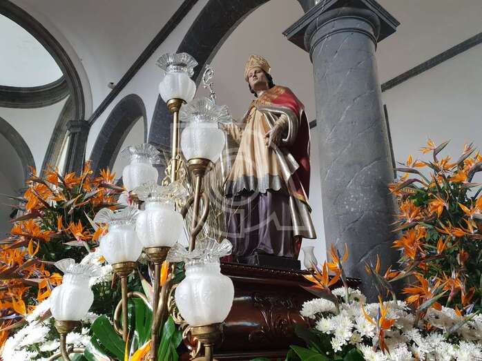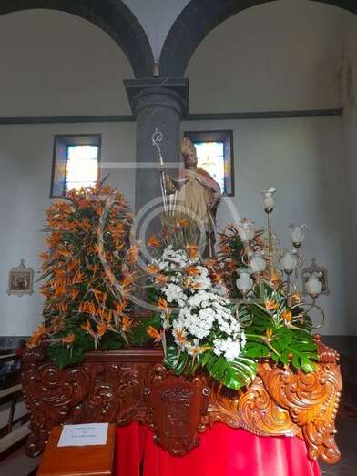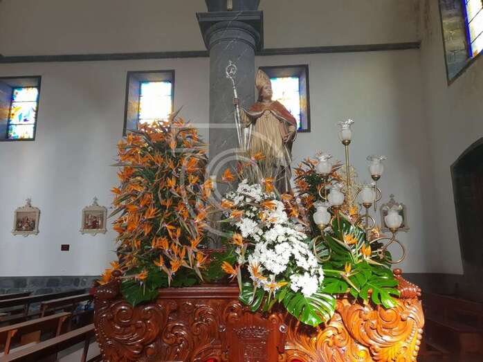 El trono llevaba un ornato floral de esterlicias y margaritas blancas, obra de la conocida floristería Guimaguada. Durante el recorrido, desde azoteas y ventanas, vecinos arrojaron trigo al paso del santo en demanda de un invierno copioso en precipitaciones para la agricultura.