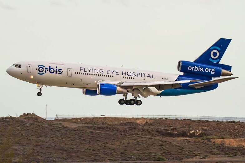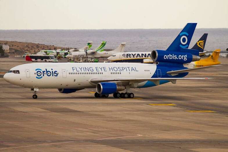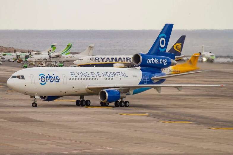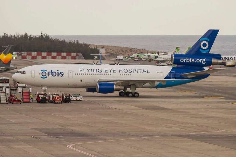 Telde.- El Aeropuerto de Gran Canaria recibió la tarde del pasado viernes al Orbis One o Flying Eye Hospital, un avión que en su interior alberga todo un centro médico de oftalmología y que vuela por todo el mundo cumpliendo una importante labor humanitaria: prestar tratamiento gratuito a personas sin recursos que sufren problemas de ceguera.