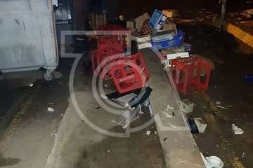Los restos de cajas y de otros envases invaden no sólo la explanada asfaltado sino también la rampa usada para las personas con movilidad reducida.