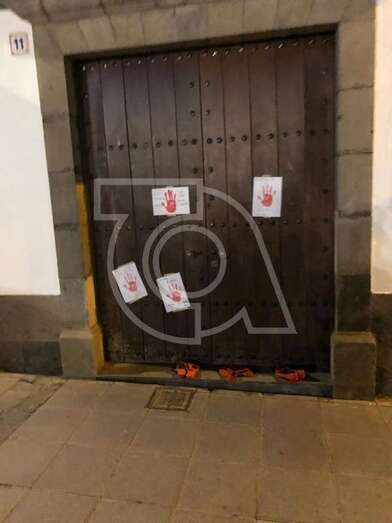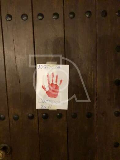 En la puerta de acceso a las oficinas municipales de San Juan se colocaron también cuatro con eslóganes como Justicia cómplice o No calles mujer, no calles.