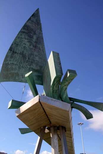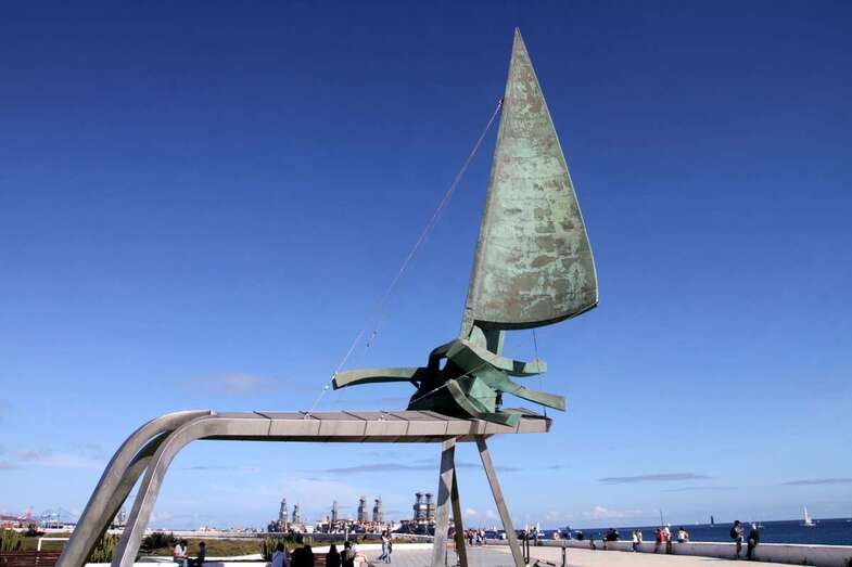 Observando las blancas velas que navegan hacia mar abierto, anotaría en mi cuaderno de bitácora, los versos de nuestro insigne poeta del Modernismo literario, Tomás Morales, que inspiró esta escultura, El Exordio del Tritón, el día de su inauguración, en los versos del poema XVIII, de la Oda al Atlántico, del Libro II de su gran obra, Las Rosas de Hércules: ¡Tripulantes! ¡La llama del entusiasmo prenda vuestras almas bravías! La custodia del barco que os entregan, reclama la actividad conjunta de vuestras energías. En vosotros se afianza la utilidad del flete. Todos sois necesarios, todos [….] ¡Recios trabajadores de la mar! ¡Marineros! ¡El Tritón, con su rúbrico caracol os saluda!