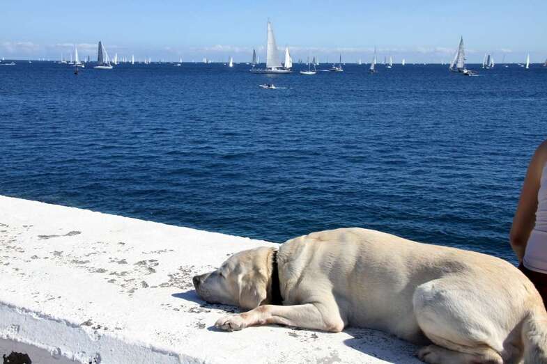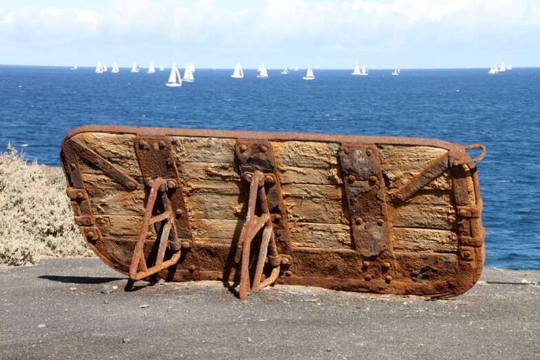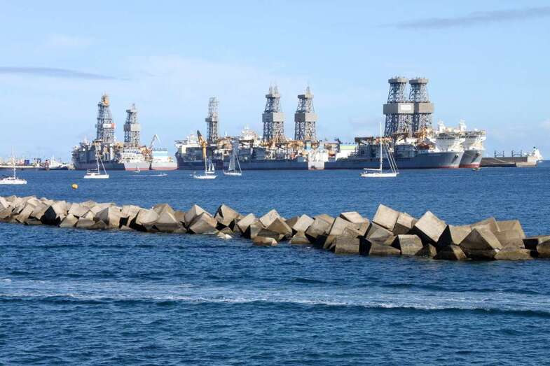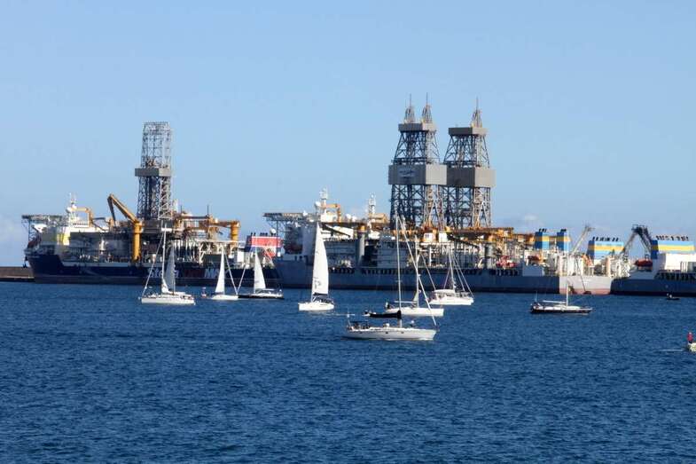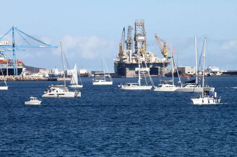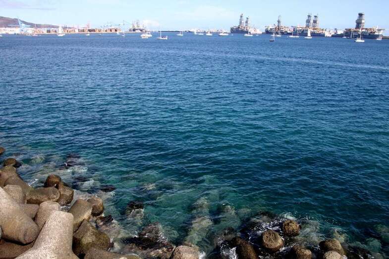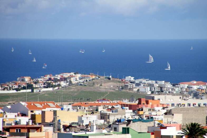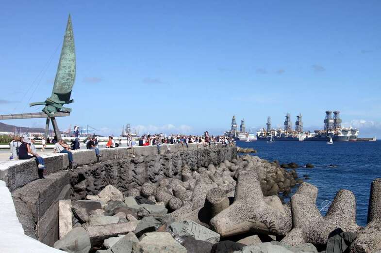 A lo largo del litoral observamos cómo van desplegando sus velas, desdibujándose los perfiles al entrar en zonas distantes de los puntos en que nos encontramos, una línea blanca de horizonte límite entre el mar y cielo, rota por algún velamen de color. Al norte la Isleta y la bocana del Puerto queda expedita, cuando no hacía mucho ofrecía la preciosa estampa portuaria de las evoluciones de las frágiles embarcaciones navegar lentamente en contraste con las inmensas moles de ingeniería naval de torres de prospecciones petrolíferas, atracados en el muelle Reina Sofía, gigantes de acero, algunos en reparaciones, otros esperando ordenes de partida a lejanas costas de otros países y continentes.