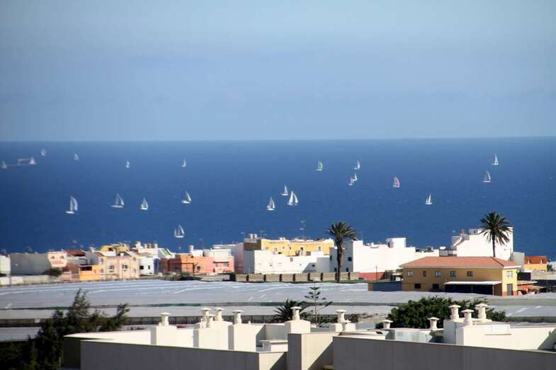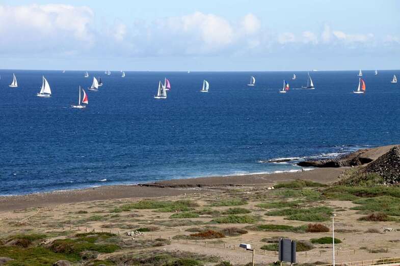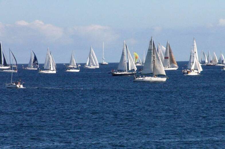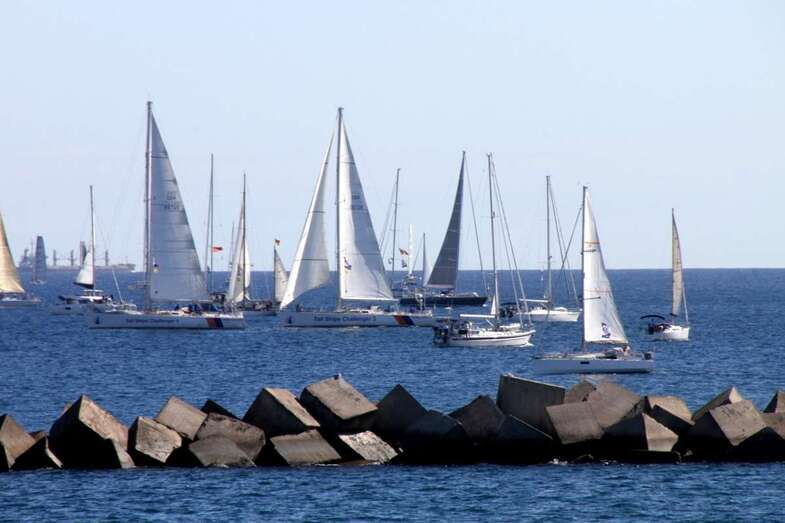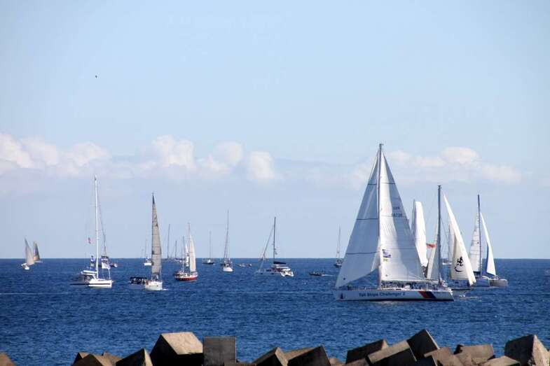 A lo lejos, las embarcaciones de recreo se mueven bien pertrechados con el aparejo dispuesto para afrontar la aventura de cruzar esta mar océana, el alisio refresca y empuja como lo hicieran antaño a otras naves que por este Archipiélago rondaron y más allá, en su Plus Ultra, arribaron, buscando otros asuntos que la historia y la crónica nos relata a conciencia. El de esta aventura náutica es el reto deportivo internacional, personal y colectivo del siglo XXI.