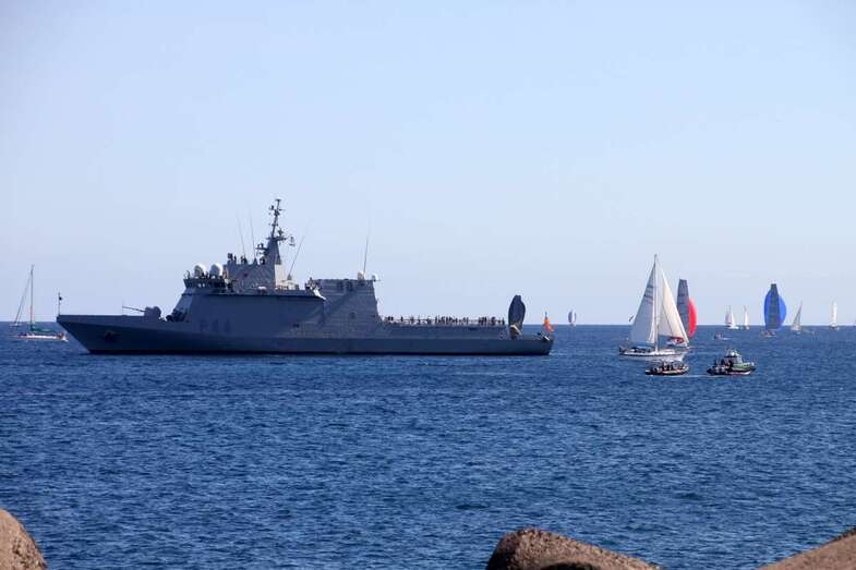 En la bahía frente a la zona de San Telmo espera para dar la salida sobre las 12:30 hs el Buque de Acción Marítima de la Armada Española, BAM, Meteoro P44, en espera en el punto de reunión para dar la señal de salida a las 12:30 hs. que durante un tiempo ha observado la concentración de barcos en esta área procedente del Muelle Deportivo y control de la Autoridad Portuaria, para proceder a dar el pistoletazo de salida, y cómo se van posicionando ya las primeras embarcaciones, las primeras en partir catamaranes, una segunda salida para las embarcaciones regata, y a las 13:00 hs. toda la diversidad de veleros que componían el total y salida final de las tres clases de esta ARC 2018. Un espectacular inicio de travesía hacia el suroeste paralelas al litoral capitalino, para entrar en aguas y frentes de la amplia costa del municipio de Telde, perdiendo su vista desde cualquier punto de estos viales costeros cuando giran en torno a la Montaña y Roque de Gando, a toda vela aprovechando la brisa y metiendo caña para aprovechar el alisio bajo reinante.