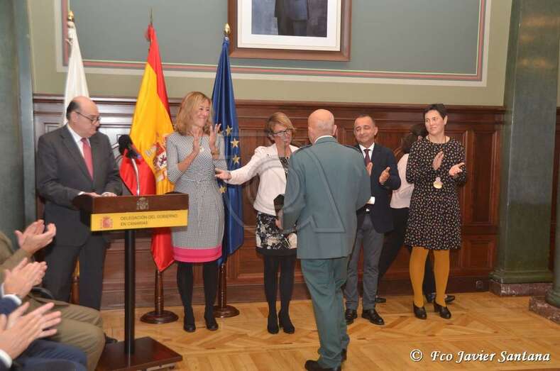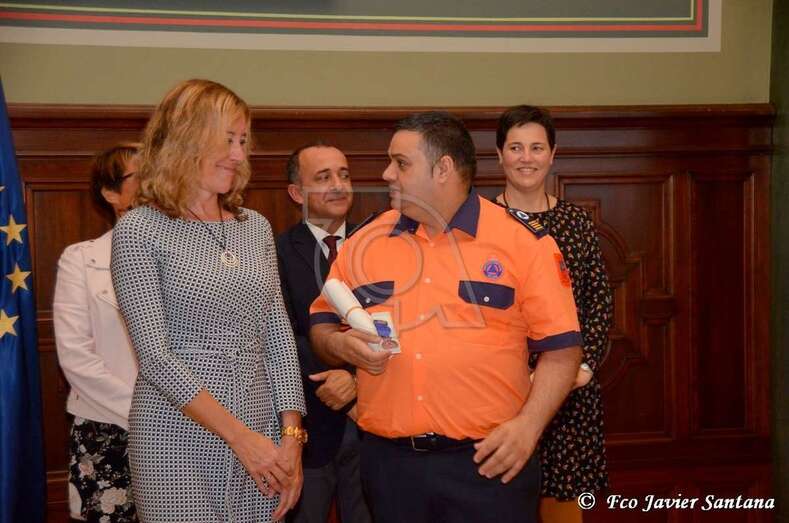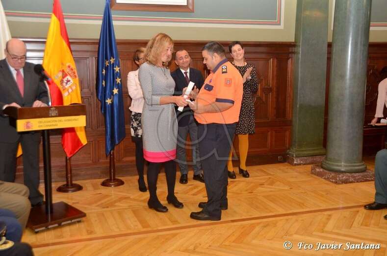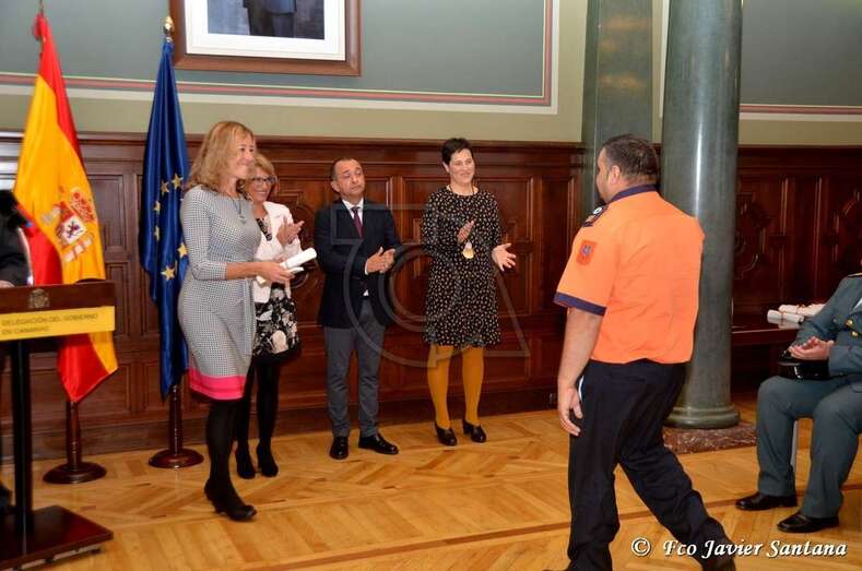 La entrega de las medallas ha tenido lugar en el Salón del Trono de la sede de la Delegación del Gobierno en Canarias de la mano de la delegada del Gobierno, Elena Máñez; de los subdelegados en Las Palmas y Santa Cruz de Tenerife, María Teresa Mayáns y Jesús Javier Plata, respectivamente, y de la jefa de la Unidad de Protección Civil de la Delegación del Gobierno, Rita María Domínguez.
