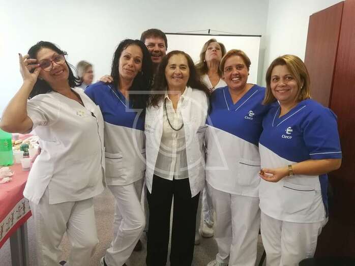 Sus compañeros, los activos y los ya jubilados le arroparon y le expresaron su cariño en su despedida. Olmos tuvo palabras de agradecimiento para todos. “Me voy feliz por tenerles como compañeros a todos, pero tengo un poquito de miedo porque los voy a extrañar”, señaló con cierta amargura y pesar.
