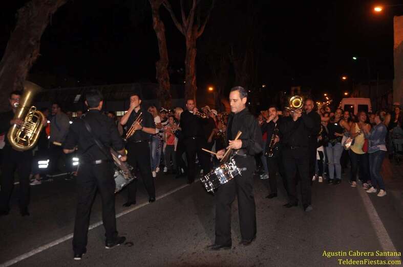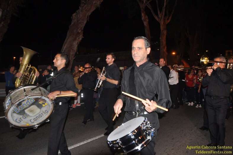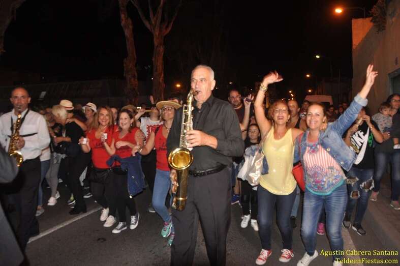 La comitiva encabezada por varios papagüevos y la banda de música Gran Canaria calentó motores pasadas las 20.00 horas en las inmediaciones de la plaza pública y de la sede del Patronato de Fiestas que preside Anatael Santana.