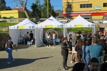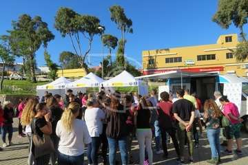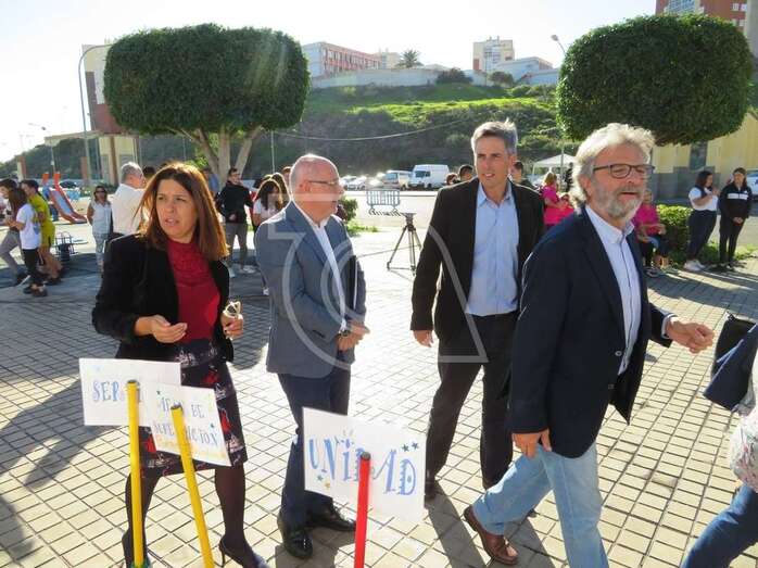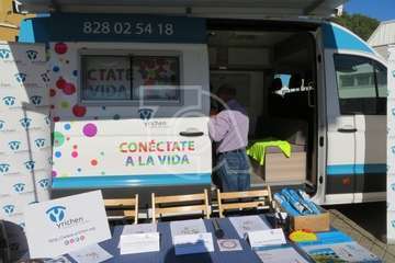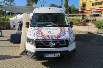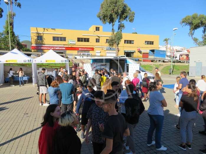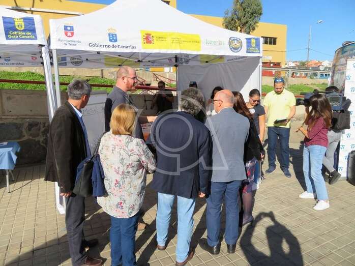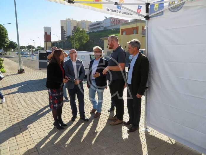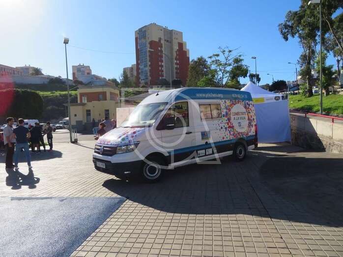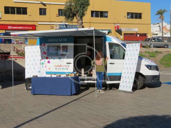 La presentación del vehículo, una mini guagua dotada con mesas y sillones, un baño y cocina, con el que esta ONG acudirá a centros escolares y eventos festivos para tratar a los jóvenes de tú a tú, tuvo lugar en la plaza situada delante del Pabellón Juan Carlos Hernández de Jinámar, con la asistencia del presidente del Cabildo grancanario, Antonio Morales, y la alcaldesa de Telde, Carmen Hernández.
