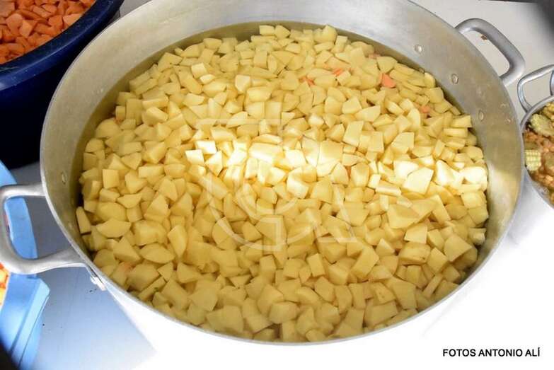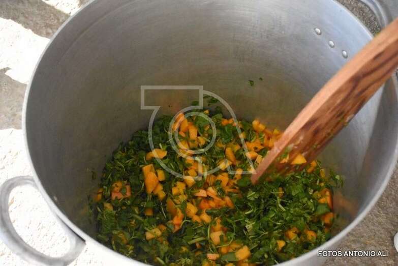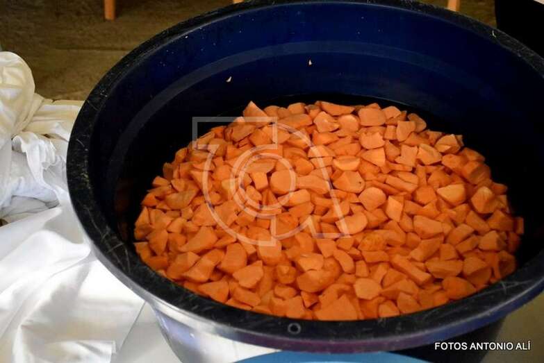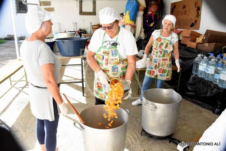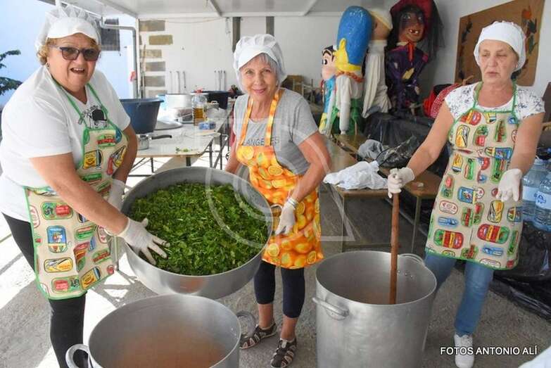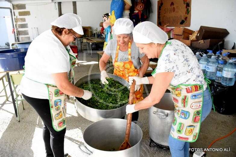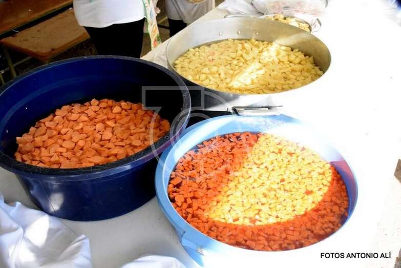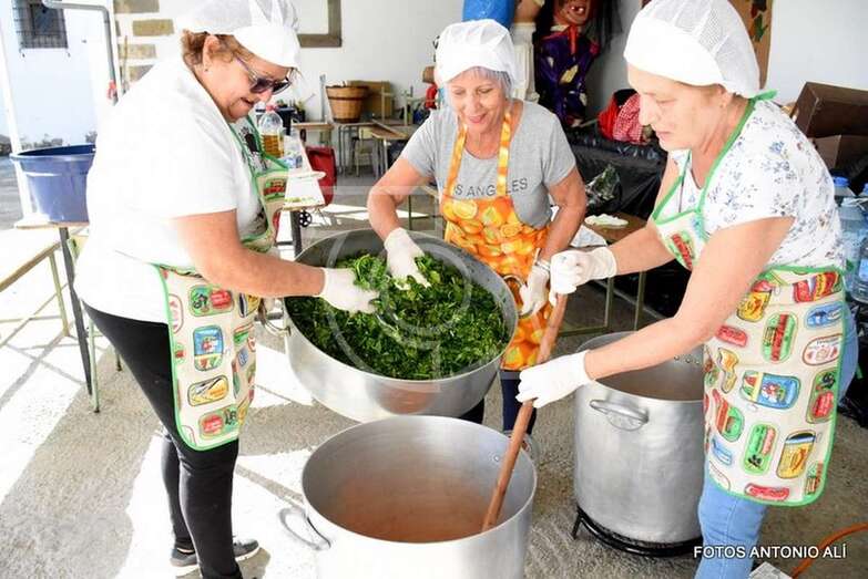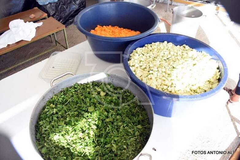 Mientras tanto, en el sitio de siempre, en un espacio techado situado en el solar anexo al tempo, miembros del patronato cocinaban desde las 8.30 horas a fuego lento, en dos grandes calderos, un apetitoso potaje de berros con los mejores ingredientes, guiso destinado a calentar las madres a los cientos de peregrinos que esta noche se desplazaran desde varios puntos de Telde a ofrendar a la patrona de Jinámar, la Inmaculada Concepción.