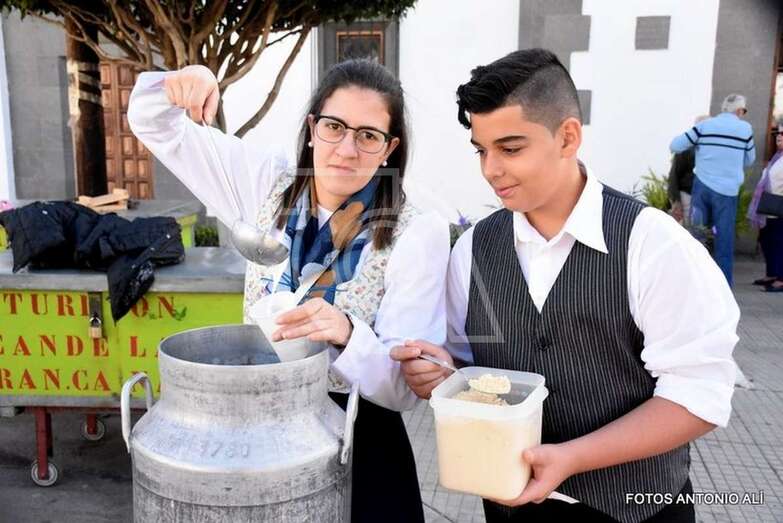 Con algo menos de asistencia respecto a ediciones pasadas, los asistentes pudieron degustar en el entorno de la plaza pública y carretera general de leche con gofio -repartida por jóvenes miembros del patronato organizador de las fiestas-, una exposición de reliquias del motor montada por el Club de Automóviles Antiguos y Clásicos de Telde, una exhibición del juego del garrote a cargo de componentes de la Escuela Paquito Santana de este deporte autóctono y de la lucha canaria por componentes del Club Castro Morales y de varios puestos donde adquirir productos artesanales o frutas como naranjas, aguacates o maracuyá, papas, quesos, pan y chorizos y aceitunas del país, entre otros. También pudieron degustar la caña de azúcar y su juego natural, el guarapo.