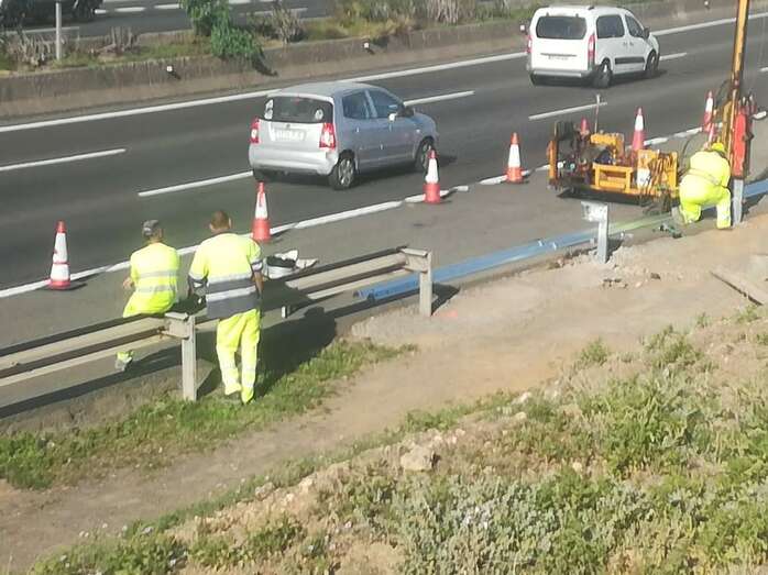 Los operarios de Carreteras, este viernes colocando la valla (Foto TA) Los operarios de Carreteras, este viernes colocando la valla (Foto TA)