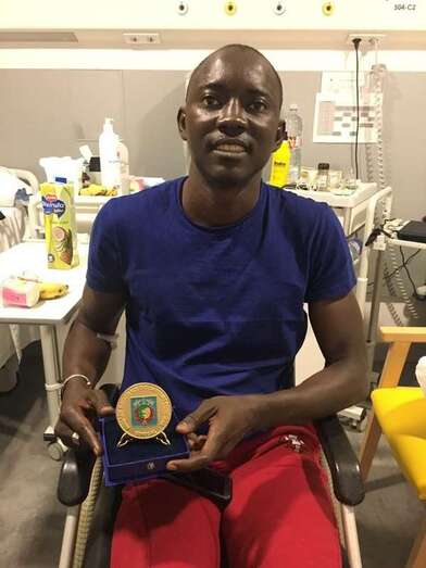 En octubre de este mismo año el Gobierno senegalés lo envía a Gran Canaria para que pueda iniciar una recuperación que aunque bien es cierto no le permitiría volver a ser quien era, si le daría mucha calidad de vida y desde entonces está ingresado en el Hospital ICOT de Telde, recibiendo un tratamiento de rehabilitación que le ha propiciado muchas mejoras que hasta ese momento no tenía.