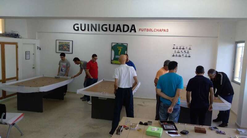 Campeonato de España. Este año fue en Cáceres y se juntaron 120 campos de fútbolchapas en un hotel. Pero la versión canaria es distinta a la peninsular. La local usa dado en vez de balón, y el portero es una caja de fósforo, no una chapa grande. Los partidos aquí son de 16 minutos en 2 tiempos de 8. En península, de 30.