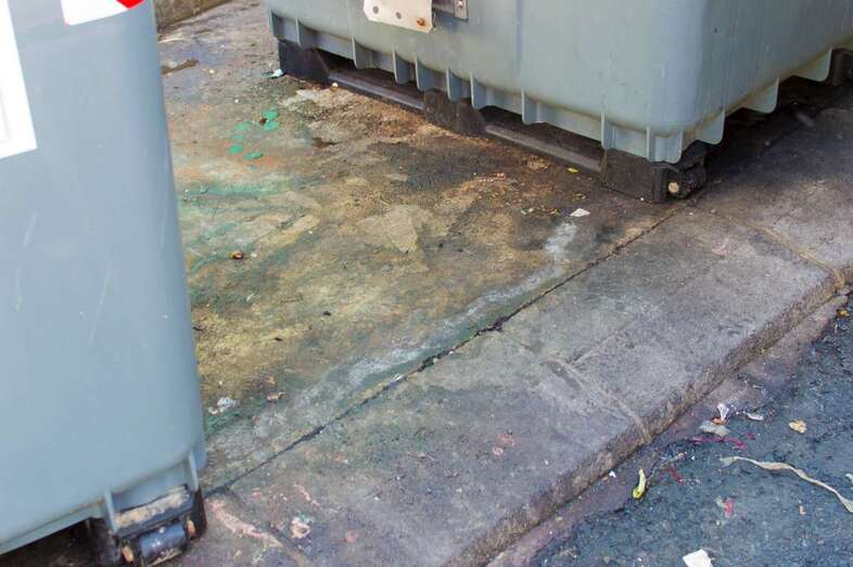 Los vecinos demandan que los servicios de limpieza baldeen casi a diario la zona próxima a los contenedores, incluida la parada de guaguas, para evitar que se convierta en un foco de infección, moscas y malos olores.
