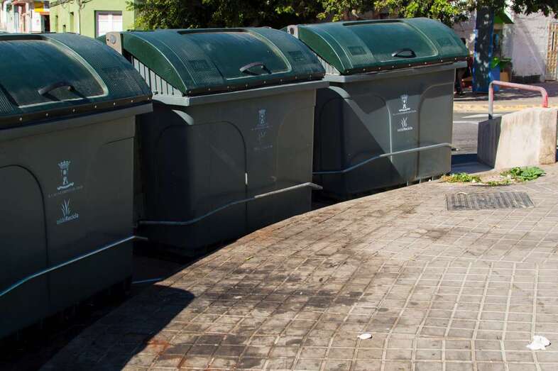 Concretamente los recipientes que están ubicados en la esquina de las calles Luis Morote y Miramar, que desprenden un hedor insoportable, "como a pescado podrido", que invade las aceras y espacios aledaños.